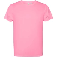Męska koszulka techniczna z krótkim rękawem. Kołnierz z pasującymi kolorystycznie szwami. Tył nieco dłuższy niż przód. Szwy boczne przesunięte do przodu.