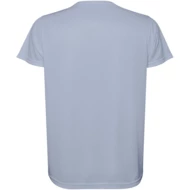Męska koszulka techniczna z krótkim rękawem. Kołnierz z pasującymi kolorystycznie szwami. Tył nieco dłuższy niż przód. Szwy boczne przesunięte do przodu.