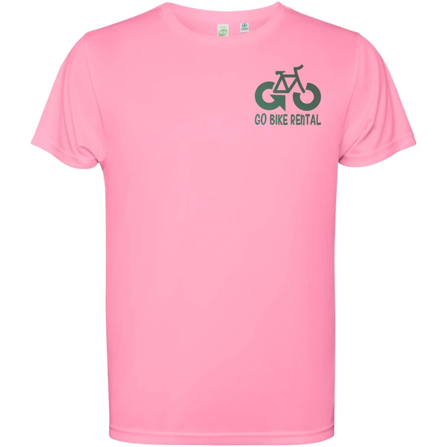 Męska koszulka techniczna z krótkim rękawem. Kołnierz z pasującymi kolorystycznie szwami. Tył nieco dłuższy niż przód. Szwy boczne przesunięte do przodu.