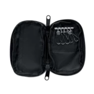 Zapinane na zamek etui na klucze z materiału 300D RPET z podszewką 210D RPET. Posiada 5 uchwytów na klucze.