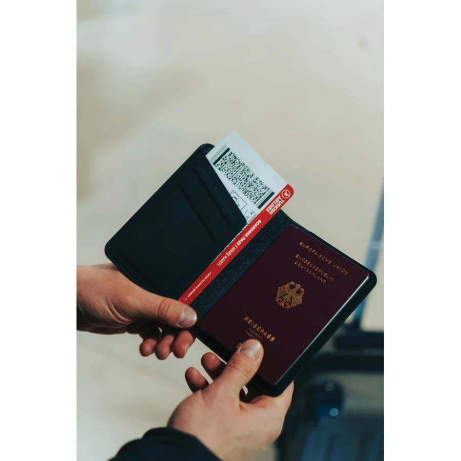 Etui na paszport z wbudowaną technologią lokalizacji Find My, możliwość śledzenia na całym świecie dzięki aplikacji Apple Find My, powiadomienia o zostawieniu paszportu, funkcja dźwiękowego lokalizowania w pobliżu, długi czas działania baterii do 6 miesięcy, możliwość ładowania bezprzewodowego w 1 godzinę, wykonane z RCS poliestru z recyklingu, całkowita zawartość materiału z recyklingu: 11%, opakowanie upominkowe z certyfikatem FSC® mix