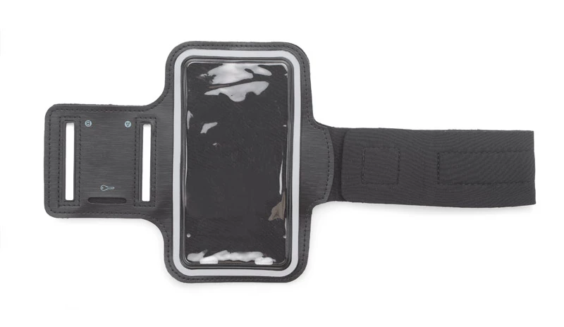 Etui na telefon w formie opaski na ramię uczyni bieganie jeszcze przyjemniejszym. Telefon schowany w środku jest zabezpieczony okienkiem przez które możemy używać ekranu dotykowego. Dodatkowo etui posiada wyjście na podłączenie słuchawek oraz małą kieszonkę np. na klucz. Maksymalny wymiar telefonu: 130 x 65 x 8 mm