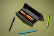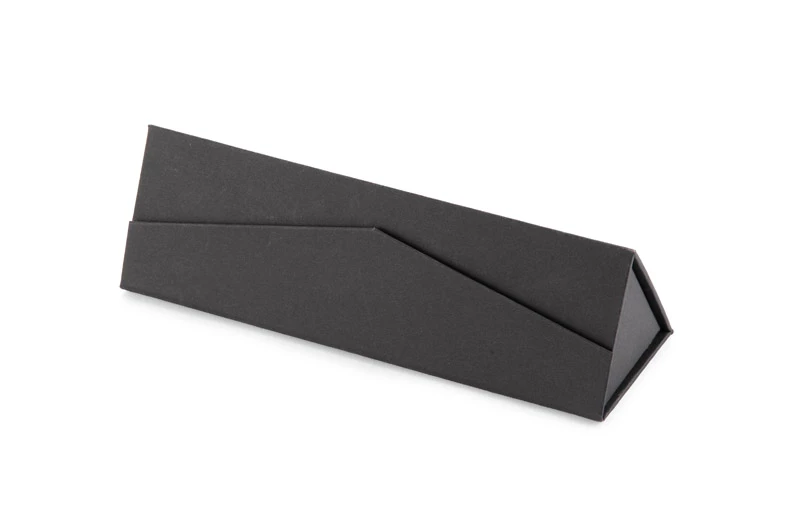 Stylowe etui piśmiennicze w unikalnym trójkątnym kształcie z magnetycznym zapięciem. Wnętrze wyłożone miękką, welurową poduszką, która zapewnia delikatną ochronę dla Twoich ulubionych przyborów do pisania. Dodatkowo wyposażone w praktyczną tasiemkę na długopisy, umożliwiającą łatwe i szybkie wyjęcie artykułów piśmienniczych. Etui pomieści jeden lub maksymalnie dwa długopisy, pióra lub ołówki.Wykonane z ekologicznego papieru, stanowi doskonałą alternatywę dla tradycyjnych etui z materiałów syntetycznych. Idealne zarówno do użytku osobistego, jak i na elegancki prezent.