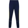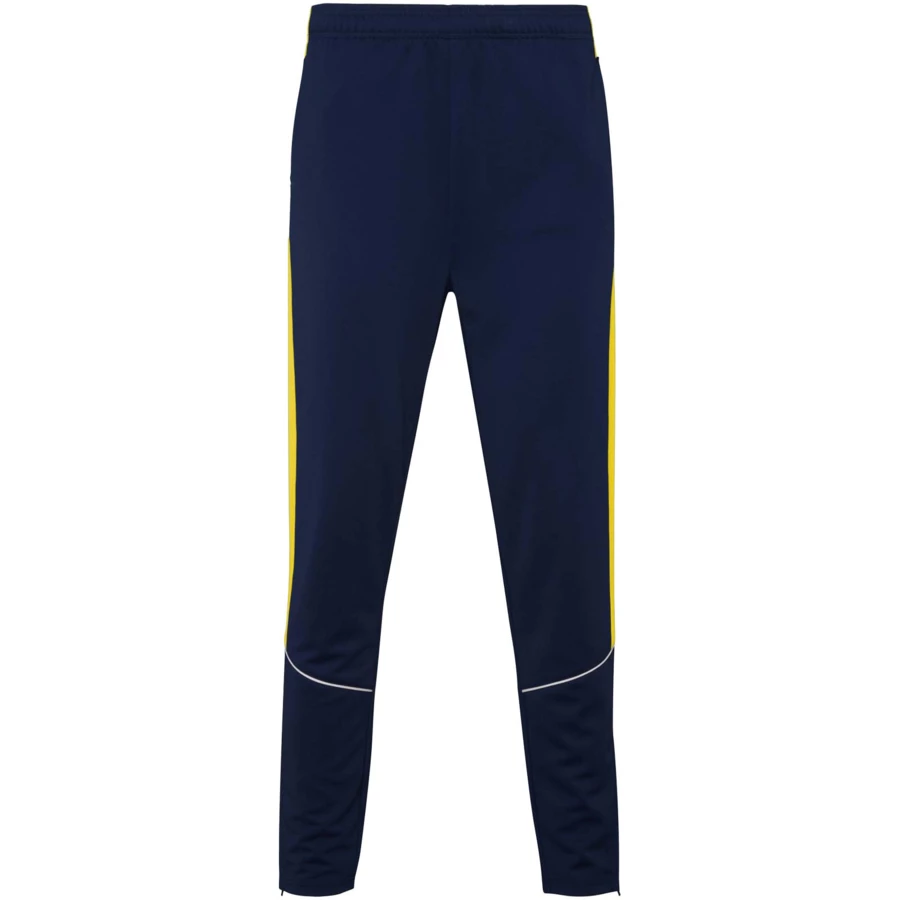 Dres z lekkiego i elastycznego materiału. Kurtka w kontrastowym kolorze z przeszyciami na klatce piersiowej. Wysoki kołnierz z kontrastowymi szwami. Zamek błyskawiczny z przodu na środku. Boczne kieszenie. Mankiety i talia wykończone ściągaczem 2x2. Spodnie z gumką w pasie i sznurkiem. Kontrastująca część z boku nogawki wykończona lamówką. Zamek błyskawiczny na dole nogawek.