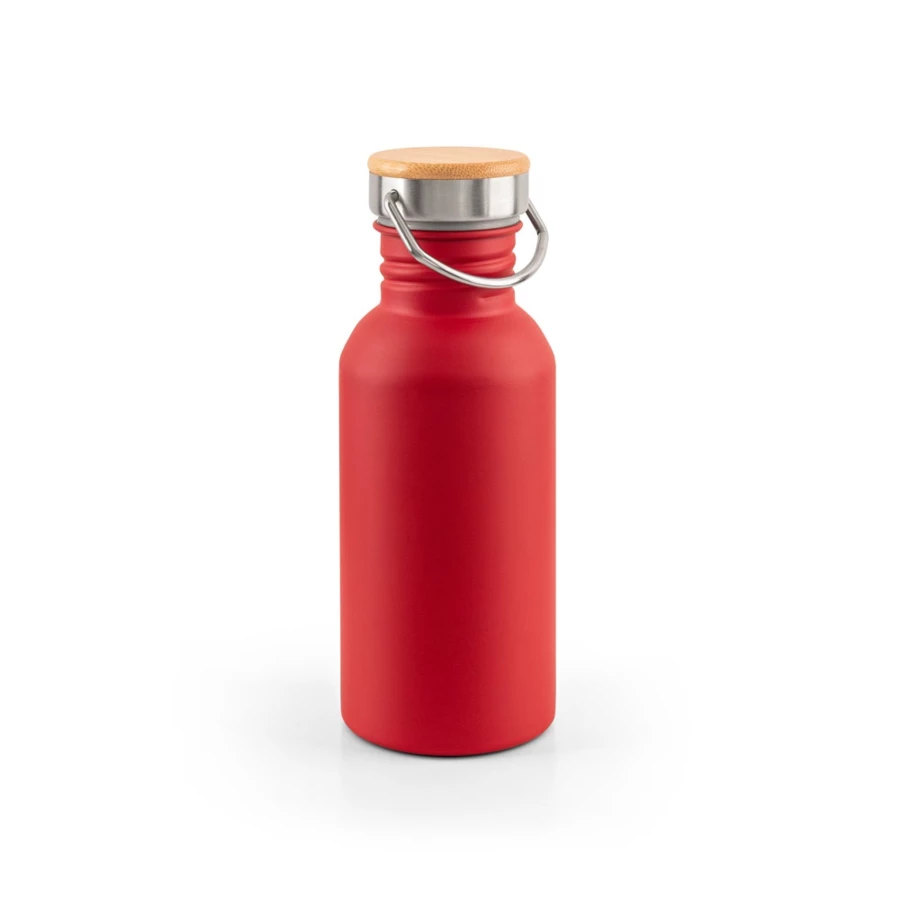 Butelka jednościenna ze stali nierdzewnej (90% pochodzi z recyklingu). Bambusowa pokrywka posiada uchwyt ze stali nierdzewnej ułatwiający przenoszenie. Pojemność do 580 ml. Dostępna w szerokiej gamie kolorów. Dostarczana w papierowym pudełku prezentowym. Ponieważ produkt jest wykonany z naturalnych materiałów, kolor produktu oraz wynik drukowania mogą się różnić w zależności od produktu. ø70 x 183 mm
