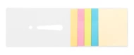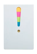 Karteczki samoprzylepne: 25 dużych i 100 małych (w 4 różnych kolorach). Z wyciętym wykrzyknikiem na okładce.