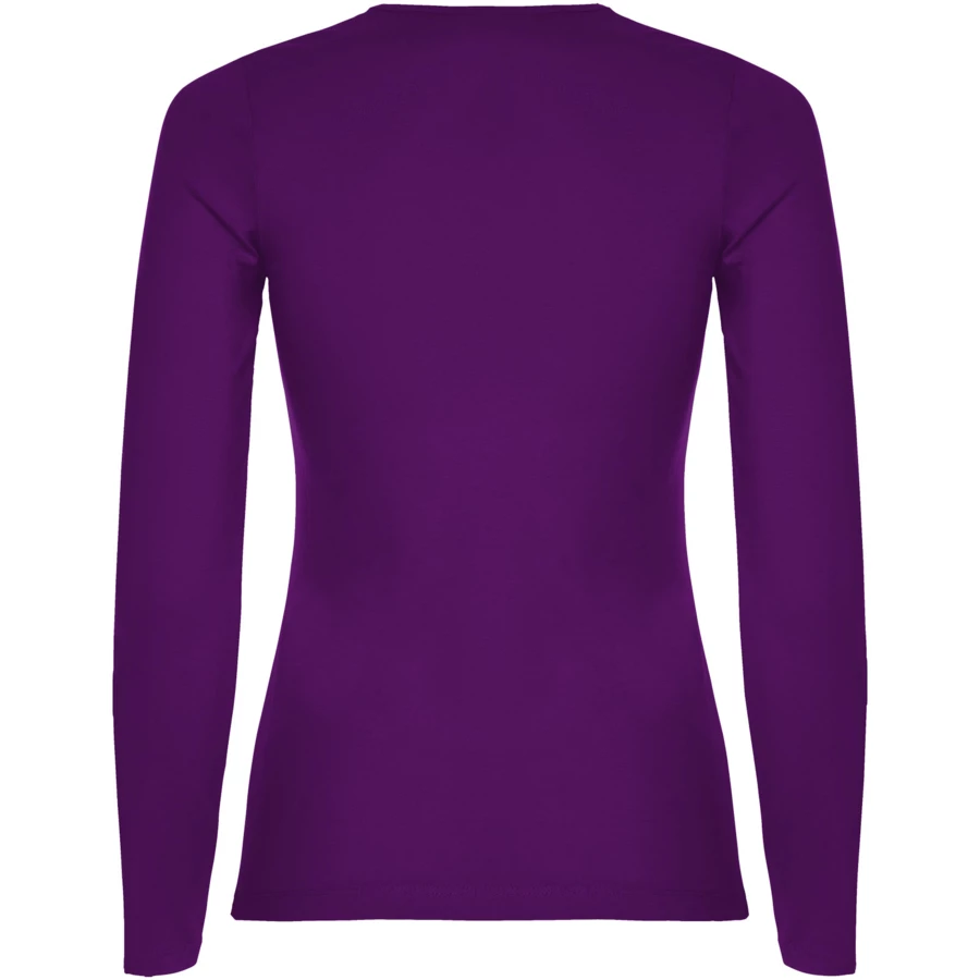 Częściowo dopasowana koszulka z długim rękawem i delikatnym wykończeniem przy szyi. Bez mankietów. Szwy boczne. Usuwalna metka.