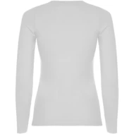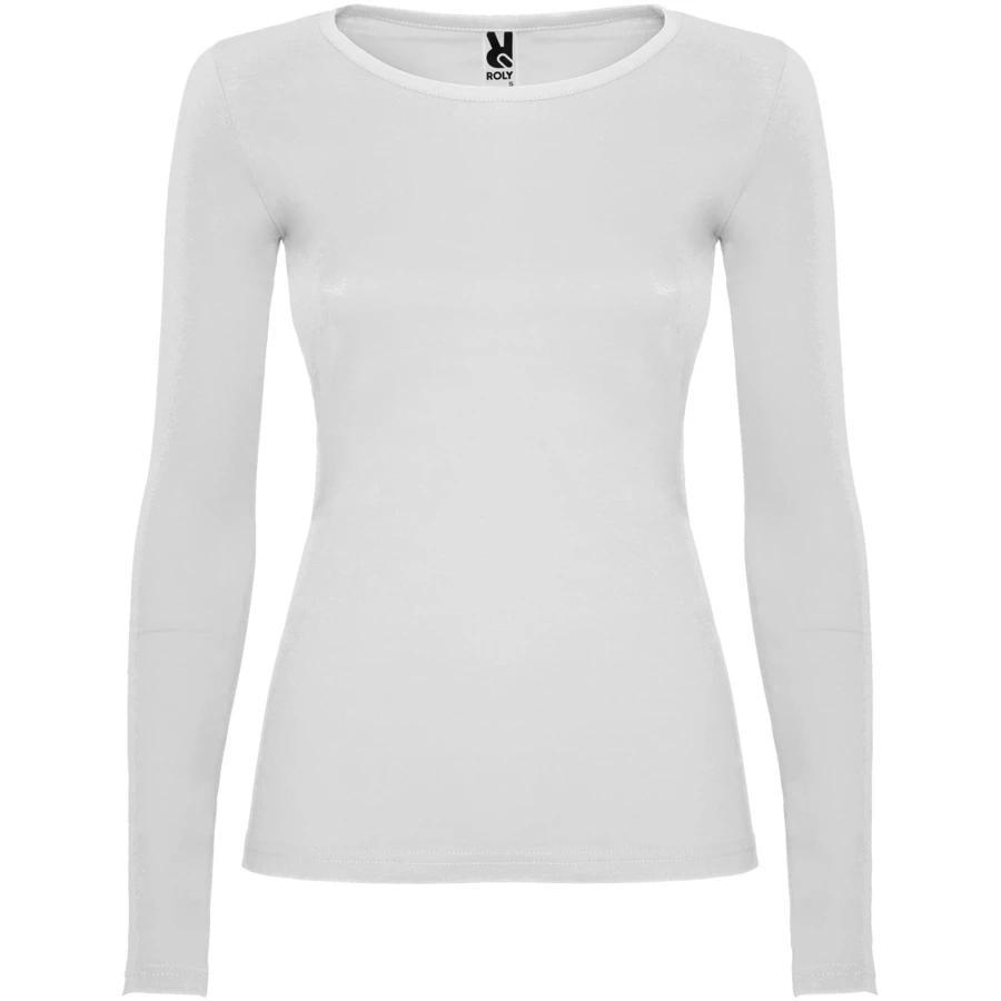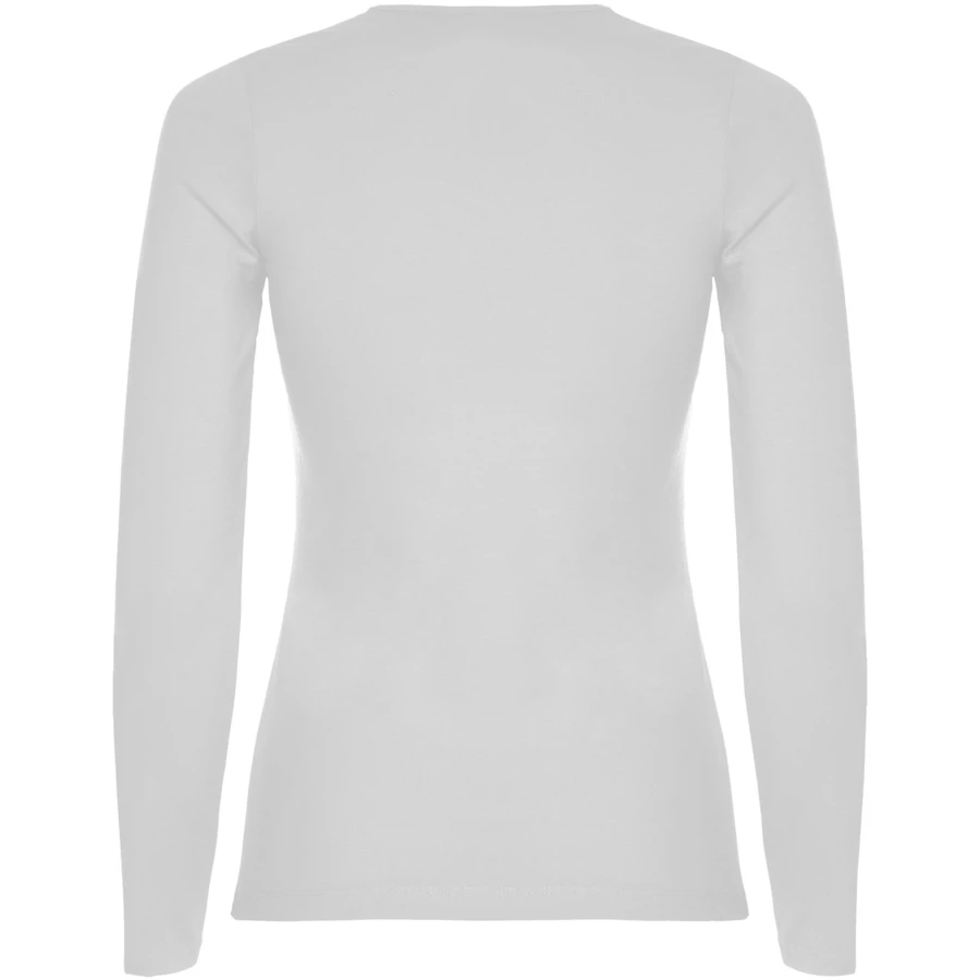 Częściowo dopasowana koszulka z długim rękawem i delikatnym wykończeniem przy szyi. Bez mankietów. Szwy boczne. Usuwalna metka.