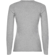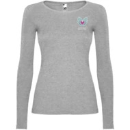 Częściowo dopasowana koszulka z długim rękawem i delikatnym wykończeniem przy szyi. Bez mankietów. Szwy boczne. Usuwalna metka.