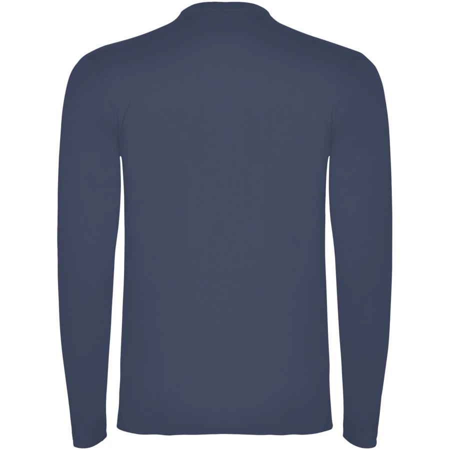 Koszulka z długim rękawem wykonana z materiału o strukturze rurkowej i 4-warstwowym okrągłym dekoltem. Wzmocnione kryte szwy w kołnierzu i ramionach. Brak mankietów. Usuwalna metka. Rurkowy krój w rozmiarach dla dorosłych i boczne szwy w rozmiarach dla dzieci.