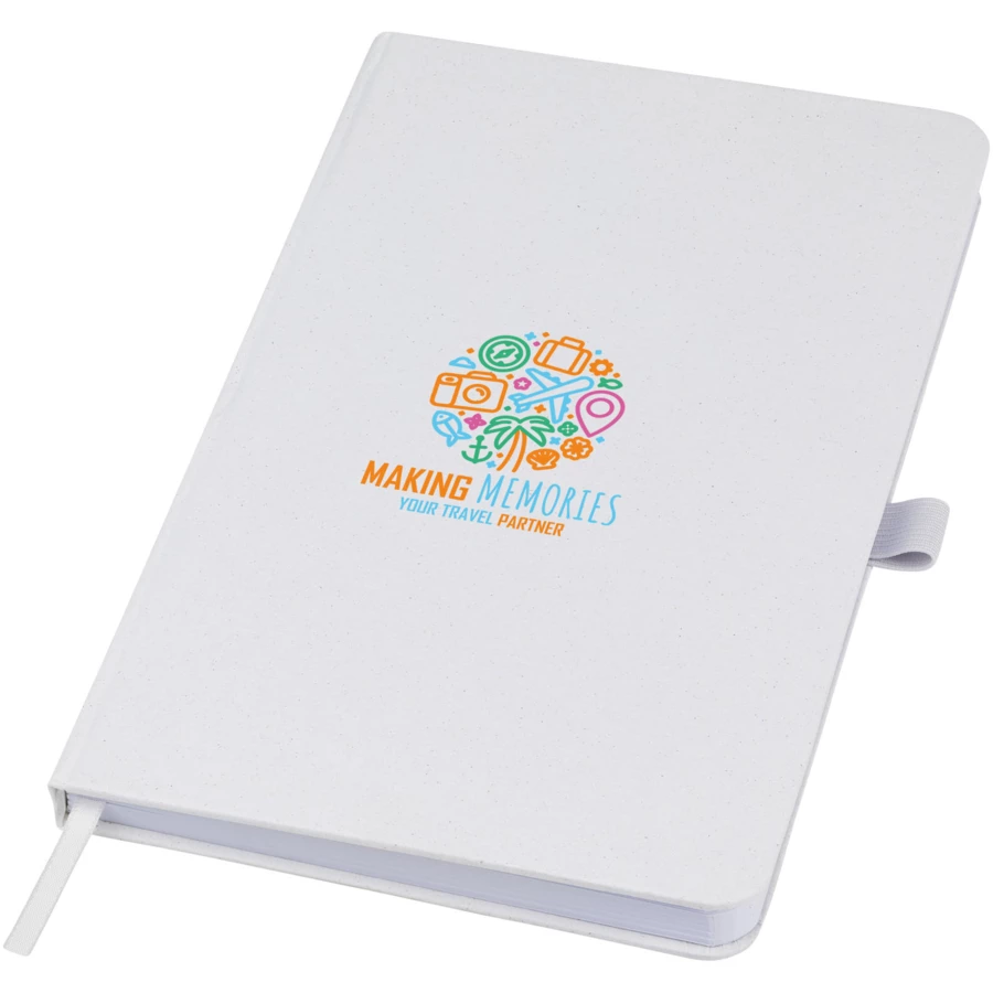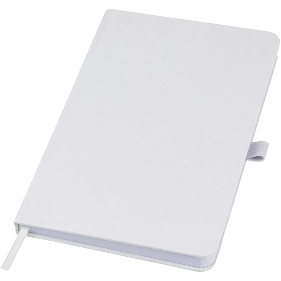 Lekki notatnik w twardej okładce do codziennych notatek z okładką wykonaną z materiałów z odpowiedzialnych źródeł. Brązowa okładka zawiera pozostałości kawy, zielona okładka zawiera pozostałości oliwek, a biała — kukurydzy. Ma 80 arkuszy (70 g/m²) w linie z białego papieru z recyklingu.