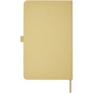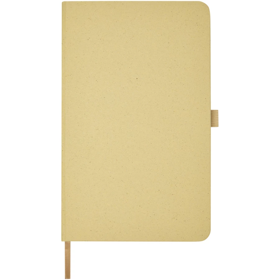Lekki notatnik w twardej okładce do codziennych notatek z okładką wykonaną z materiałów z odpowiedzialnych źródeł. Brązowa okładka zawiera pozostałości kawy, zielona okładka zawiera pozostałości oliwek, a biała — kukurydzy. Ma 80 arkuszy (70 g/m²) w linie z białego papieru z recyklingu.