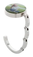 Składany, metalowy wieszak na torbę.