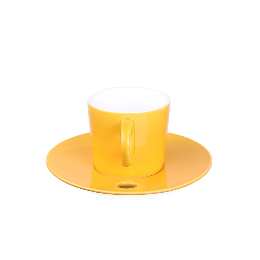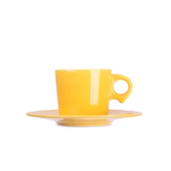 Efektowna kolorowa filiżanka wykonana z porcelany. Posiada ciekawy kształt oraz designerskie ucho korespondujące ze spodkiem.