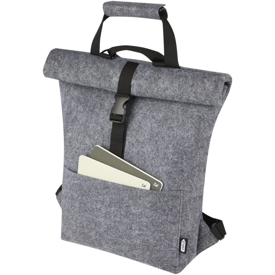 Wielofunkcyjne i modne połączenie plecaka zamykanego od góry i torby rowerowej wykonane z wysokiej jakości, miękkiego i wytrzymałego filcu z materiałów z recyklingu z certyfikatem GRS. Ma dużą komorę główną, przednią kieszeń, regulowane ramiączka i 3 paski na rzepy do mocowania torby z tyłu roweru. Paski naramienne można łatwo przekształcić w długi system uchwytów do przenoszenia lub je związać, aby paski nie wpadły w koło rowerowe.