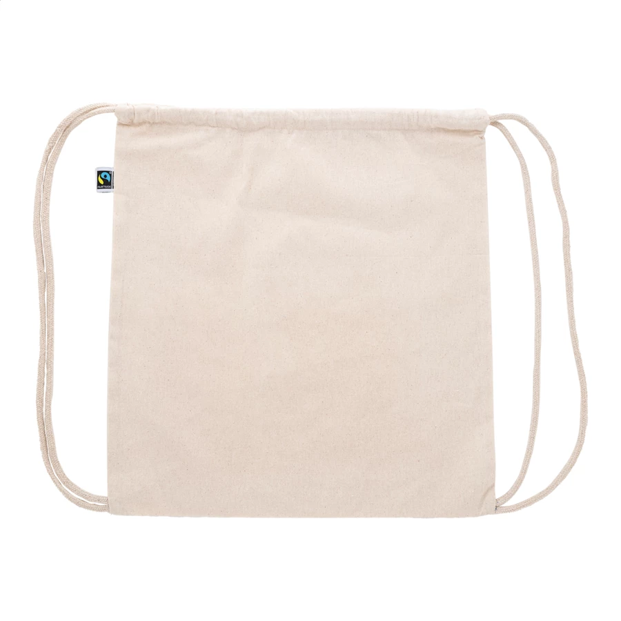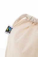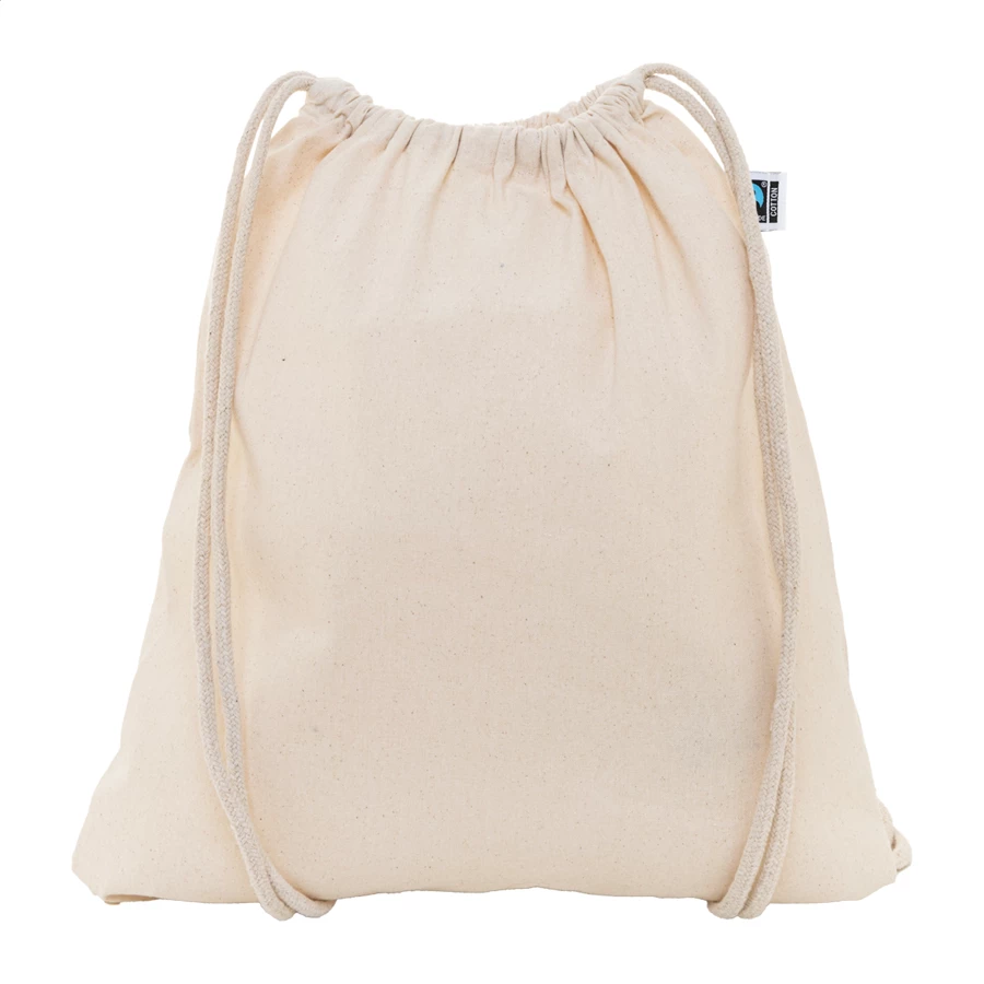 Worek ze sznurkami wykonany z bawełny Fairtrade, z charakterystyczną metką Fairtrade. Wykonany w 100% z bawełny Fairtrade, 180 g/m².
