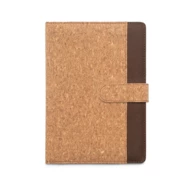 Teczka formatu A5 z wyjmowanym notatnikiem dla lepszej organizacji. Okładka wykonana jest z korka i poliestru pochodzącego z recyklingu (100% rPET). Składa się z: 1 kieszeni z korka i poliestru pochodzącego z recyklingu, zaokrąglonych rogów, pasek z zapięciem magnetycznym i uchwytu na długopis (nie wchodzi w skład zestawu). Wnętrze, z podszewką z korka i poliestru, zawiera: 2 kieszeń z korka, 4 uchwyty na karty i 1 notes, wykonany z materiału z certyfikatem FSC™ i innych kontrolowanych materiałów, z elastyczną okładką i 192 stronami w kolorze kości słoniowej (70 g/m²). Ponieważ produkt jest wykonany z naturalnych materiałów, kolor produktu oraz wynik drukowania mogą się różnić w zależności od produktu. Folder: 150 x 220 mm