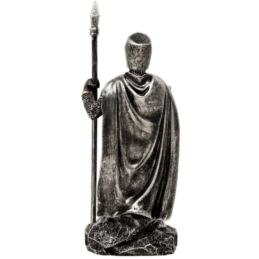 Dekoracyjna figurka przedstawiająca średniowiecznego rycerza z włócznią i tarczą. Produkt wykonany z wytrzymałego polyresinu, charakteryzuje się wysokim poziomem odwzorowania detali oraz klasyczną kolorystyką imitującą metaliczne wykończenie. Figurka ręcznie malowana, co podkreśla jej dekoracyjny charakter.