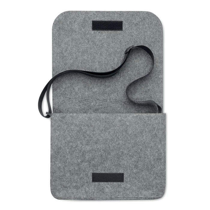 Filcowa torba listonoszka lub torba na laptopa RPET z zapięciem na rzep. Pasuje do 15-calowego laptopa.