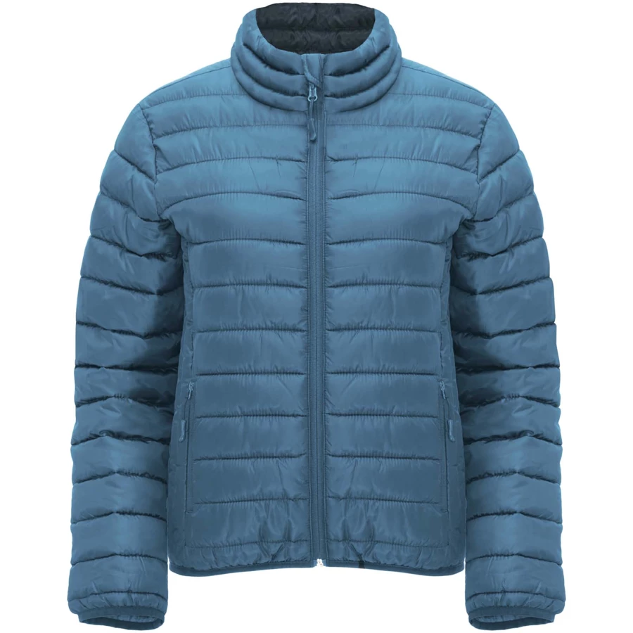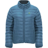 Damska kurtka pikowana z wypełnieniem przypominającym w dotyku pierze. Odwrócone zamki błyskawiczne z dopasowanym ochraniaczem podbródka i ściągaczem. Dwie przednie kieszenie z zamkami błyskawicznymi. Dopasowana elastyczna lamówka w kołnierzu, mankietach i u dołu. Kontrastowa podszewka wewnętrzna. W zestawie torba transportowa. Lekka i składana odzież. Dopasowany krój. Usuwalna metka. Wodoodporność. Wiatroszczelna.
