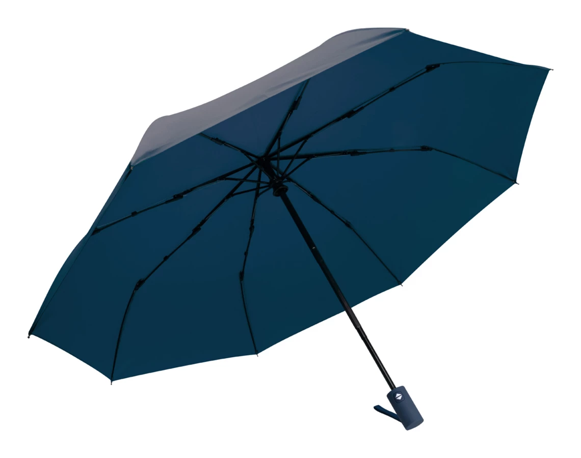 W pełni automatyczny (otwieranie/zamykanie), wiatroszczelny, składany parasol z 8 panelami w dopasowanym kolorystycznie etui. Z metalową ramą, żebrami z włókna szklanego i gumowanym uchwytem. Pongee 190T RPET. Z charakterystyczną metką RPET.