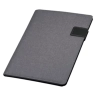 Folder A4 wykonany z poliestru. Folder składa się ze szlufki na długopis, kieszonki na telefon, 6 przegród, 40 stronicowego notesu. Zamykana na magnes. Dostępny w szarym kolorze.