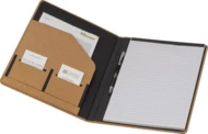 Folder konferencyjny o formacie A4, w korkowej okładce. Wewnątrz znajduje się notatnik z 60 kartkami w linie, z papieru pochodzącego z recyklingu oraz przegródki na notatki czy wizytówki.