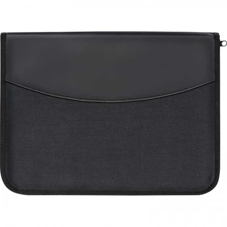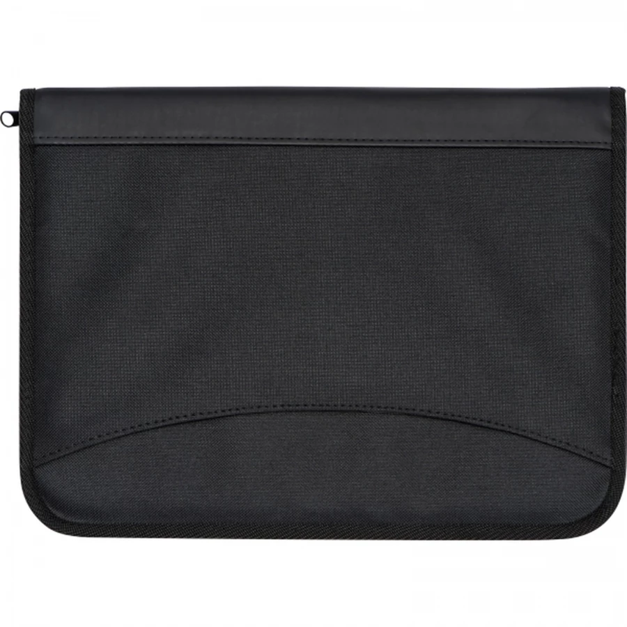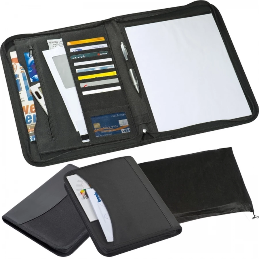 Teczka A4 z PU i poliestru 600D, zamykana na zamek. Posiada wiele przegródek oraz 10-kartkowy notatnik.