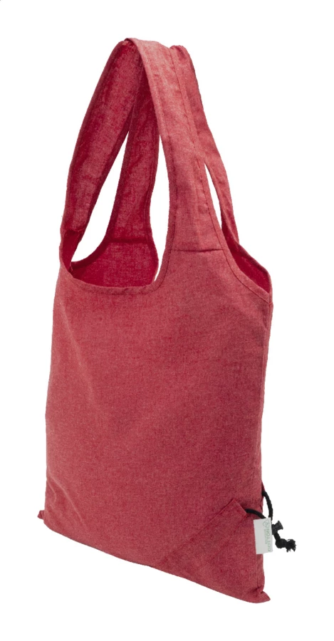 Składana torba na zakupy wykonana w 70% z bawełny pochodzącej z recyklingu i w 30% z poliestru RPET, o gramaturze 140 g/m². Z charakterystyczną metką z bawełny pochodzącej z recyklingu.
