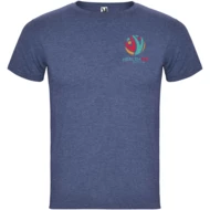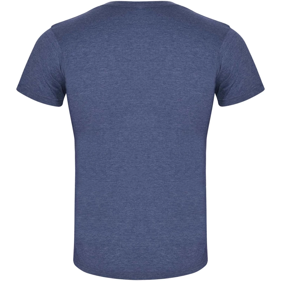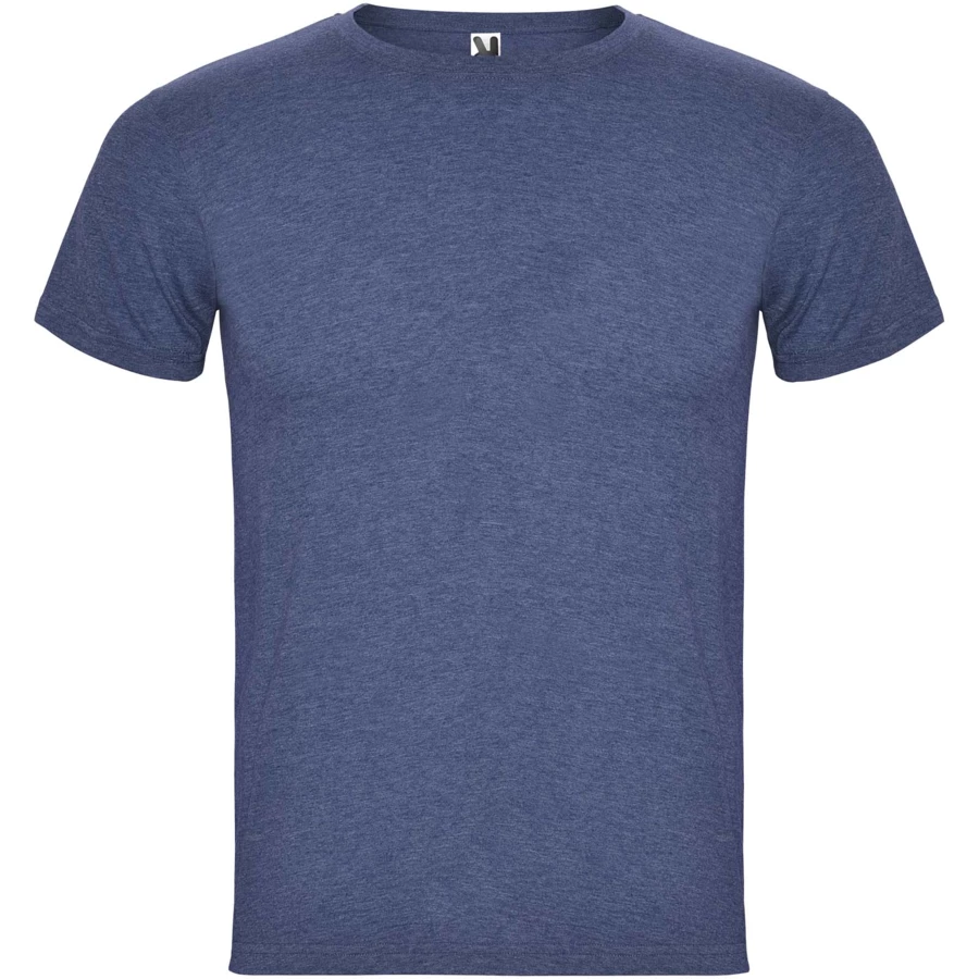 T-shirt z krótkim rękawem i efektem melanżu. Okrągły dekolt wykończony ściągaczem 1x1 z wewnętrznymi wzmocnionymi szwami. Materiał rurkowy. Usuwalna etykieta.