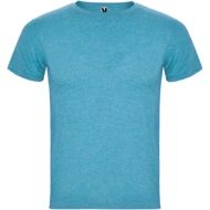 T-shirt z krótkim rękawem i efektem melanżu. Okrągły dekolt wykończony ściągaczem 1x1 z wewnętrznymi wzmocnionymi szwami. Materiał rurkowy. Usuwalna etykieta.