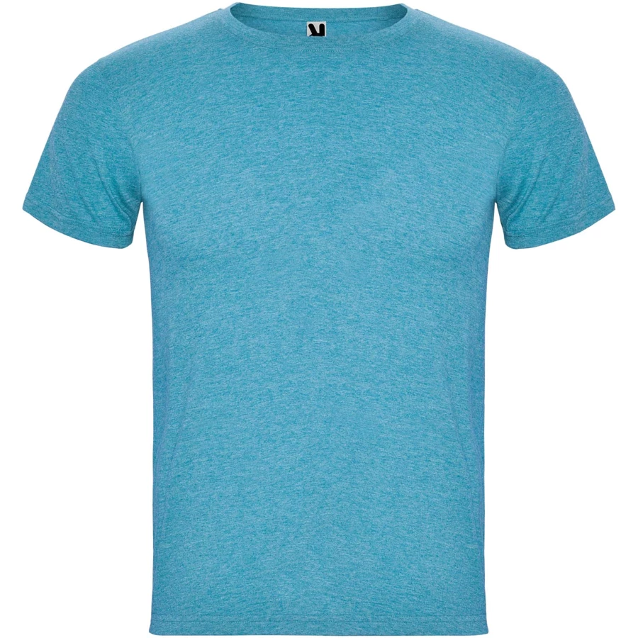 T-shirt z krótkim rękawem i efektem melanżu. Okrągły dekolt wykończony ściągaczem 1x1 z wewnętrznymi wzmocnionymi szwami. Materiał rurkowy. Usuwalna etykieta.