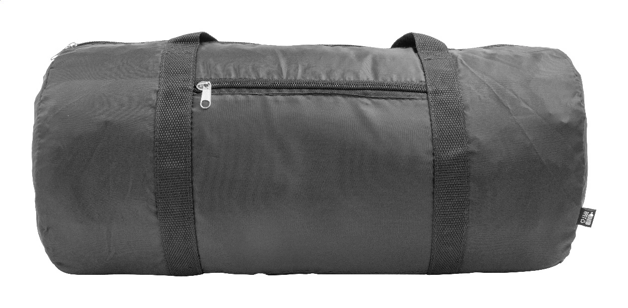 Torba sportowa RPET z główną komorą zapinaną na zamek, przednią kieszenią zapinaną na zamek i długimi uchwytami. Poliester RPET 190T z charakterystyczną metką RPET.