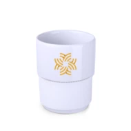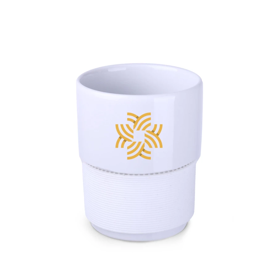 Średniej wielkości, ceramiczny kubek reklamowy bez uchwytu. Opaski o szerokości 40mm dostępne w kilku wersjach kolorystycznych: białej, pomarańczowej, czerwonej, granatowej, brązowej i czarnej.