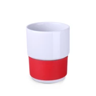 Średniej wielkości, ceramiczny kubek reklamowy bez uchwytu. Opaski o szerokości 40mm dostępne w kilku wersjach kolorystycznych: białej, pomarańczowej, czerwonej, granatowej, brązowej i czarnej.