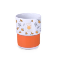 Model w stylu retro o prostym designie, wykonany z europejskiej porcelany. Jego kształt umożliwia sztaplowanie. Posiada dostępną w wariantach kolorystycznych elastyczną opaskę o grubości 40 mm, która chroni dłonie przed poparzeniem.