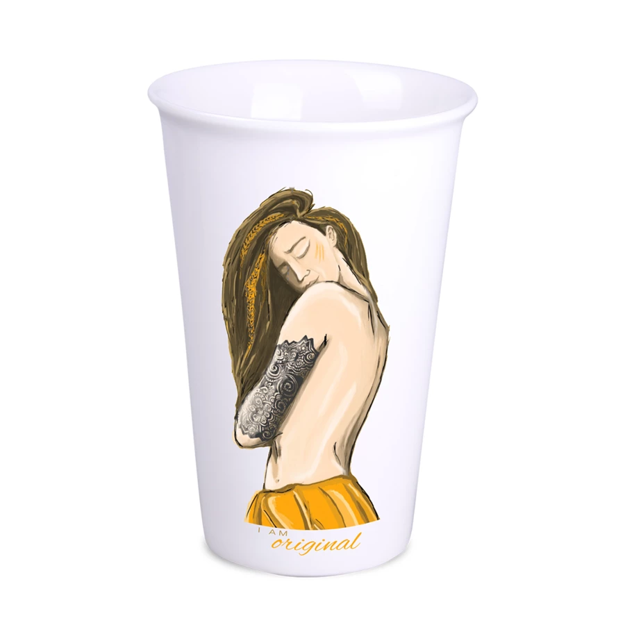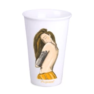 Porcelanowy kubek reklamowy bez ucha. Dzięki rzadko spotykanej, wewnętrznej strukturze podwójnych ścianek z porcelany kubek ten charakteryzuje się podwyższonym poziomem izolacji termicznej.