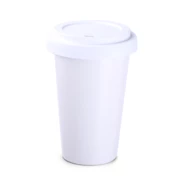 Porcelanowy kubek reklamowy z polimerową przykrywką chroniącą przed przypadkowym rozlaniem napoju. Model skierowany dla osób aktywnych, miłośników wycieczek i podróży. Dzięki rzadko spotykanej, wewnętrznej strukturze podwójnych ścianek z porcelany kubek ten charakteryzuje się podwyższonym poziomem izolacji termicznej. Przykrywka dostępna jest w kilku kolorach.