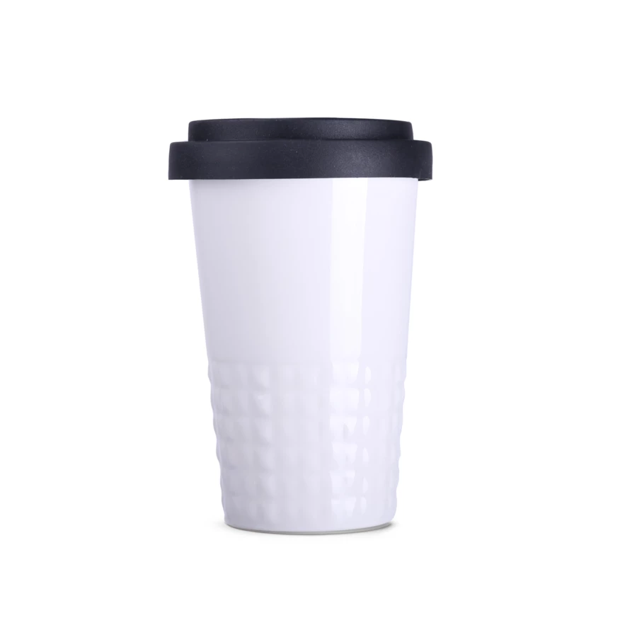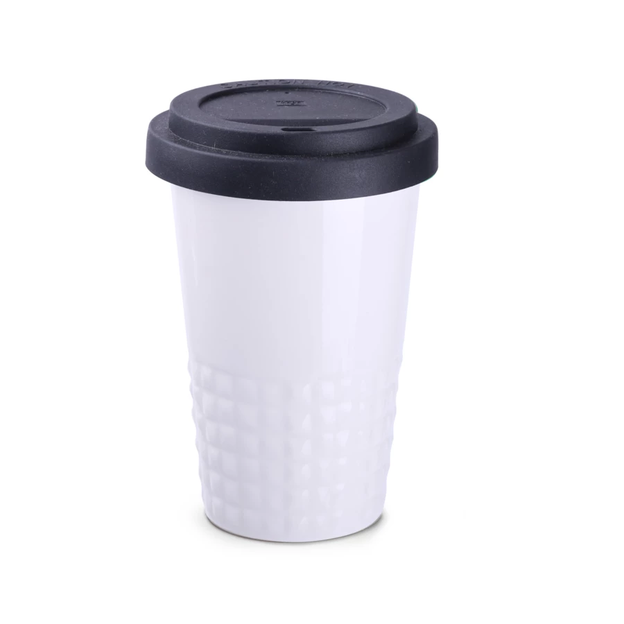 Designerski kubek mobilny wykonany z porcelany. Posiada charakterystyczne wykończenie dolnej części w postaci wypustek. Model skierowany dla osób aktywnych, miłośników wycieczek i podróży. Dzięki rzadko spotykanej, wewnętrznej strukturze podwójnych ścianek z porcelany charakteryzuje się podwyższonym poziomem izolacji termicznej. Posiada przykrywkę dostępną w 8 kolorach: biały, pomarańczowym, czerwonym, zielonym, granatowym, brązowym, czarnym i szarym.