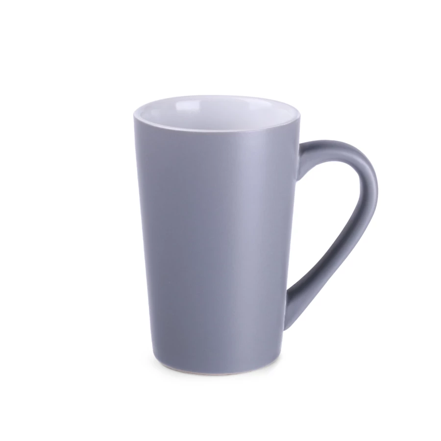 Klasyczny kubek o trapezowym kształcie i wysokich ściankach. Wyróżnia go eleganckie szare matowe wykończenie. Doskonale nadaje się do wykonywania na nim dużych zdobień.