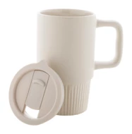 Wysokiej jakości ceramiczny kubek podróżny z matowym wykończeniem zewnętrznym i plastikową pokrywką PP. Pojemność 420 ml.
