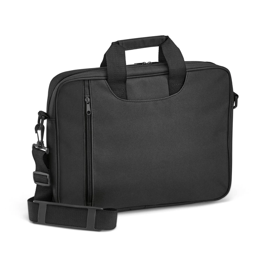 Torba na laptopa do 15'6'', wykonana z poliestru 600D, z regulowanym i wzmocnionym paskiem na ramię, 1 główną kieszenią i 2 dodatkowymi kieszeniami. Podszyte i wyściełane wnętrze. 370 x 290 x 60 mm