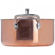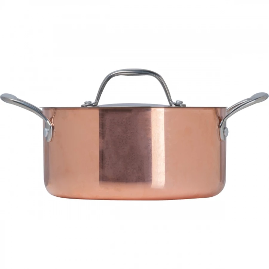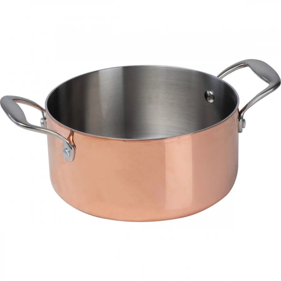 Garnek wykonany ze stali nierdzewnej z miedzianą, zewnętrzną powłoką. Nadaje się do użytku na kuchenkach gazowych, elektrycznych i indukcyjnych.