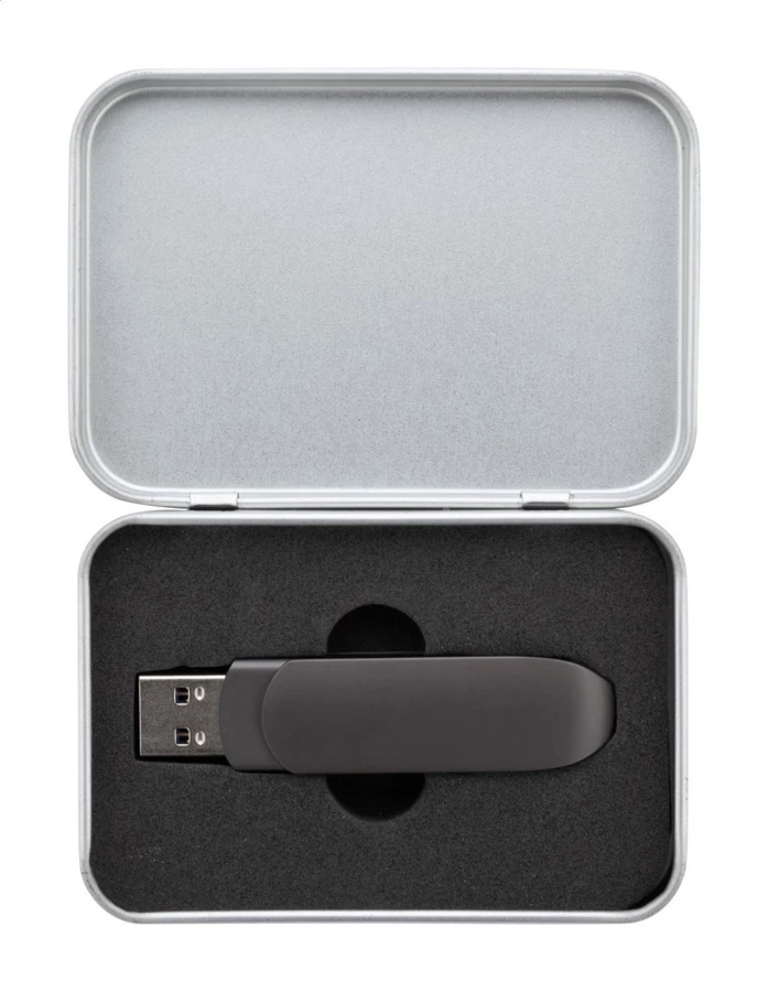 Pendrive USB Twist OTG w obudowie metalowej z pamięcią 16/32 GB. Z połączeniami USB i USB-C. W blaszanym pudełku. USB 2.0.