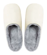 Bawełniane kapcie unisex z pluszową poliestrową podszewką.