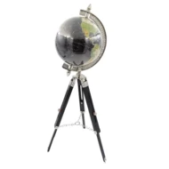 Wspaniały globus plastikowy na drewnianym trójnogu o regulowanej wysokości.