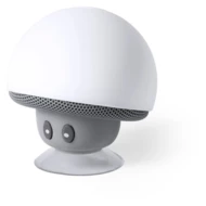 Głośnik bezprzewodowy "grzybek" BT 5.0 3W, może służyć także jako stojak na telefon, bateria 200 mAh, posiada funkcję odbierania połączeń, wbudowany mikrofon, zasięg do 10 m, ładowany przez USB, kabel micro USB w komplecie