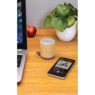 Głośnik bezprzewodowy 3W, BT 5.0, wykonany z bambusa i tkaniny, wbudowany akumulator o pojemności 300 mAh umożliwia odtwarzanie muzyki do 3 godzin, zasięg do 10 m, ślad węglowy produktu: 0,71 kg CO2