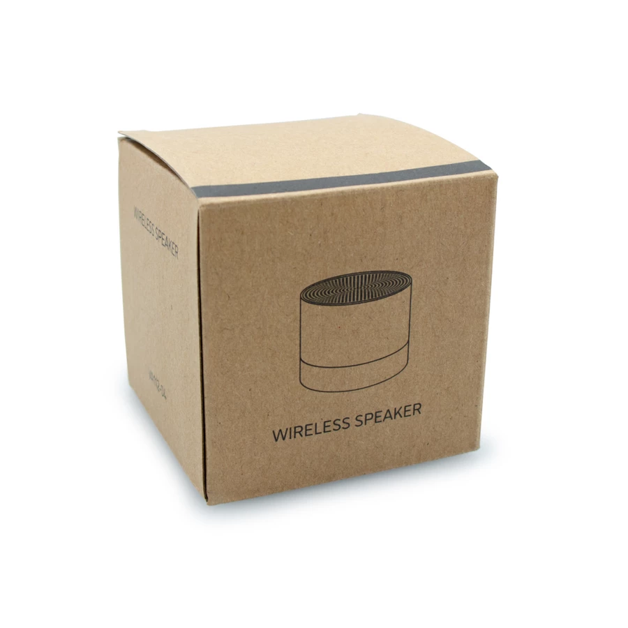 Głośnik bezprzewodowy 3W, BT 5.4, posiada obudowę wykonaną z aluminium z recyklingu oraz bambusową podstawę, wbudowana bateria 300 mAh wystarcza na ok. 2-3h pracy głośnika, zasięg do 10 m, wejście USB-C, w komplecie kabel USB-C, produkt wykonany z aluminium z recyklingu oraz bambusa