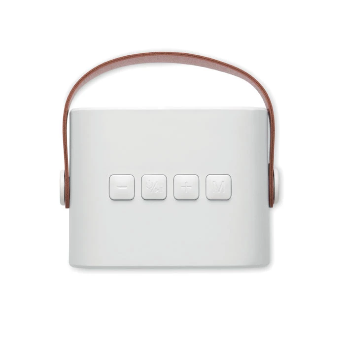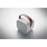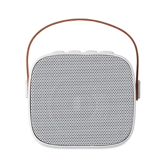 5.0 bezprzewodowy głośnik z recyklingowanego ABS z uchwytem z PU. 1 akumulator Li-ION 500 mAh w zestawie. Zawiera port karty SD i kabel AUX/USB. Dane wyjściowe: 5W, 3 Ohm i 5V. Czas odtwarzania ok. 4 godz.